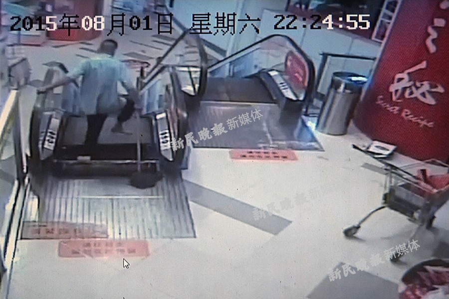 【新民网·最新报导】昨晚,上海长宁区中山公园龙之梦发生电梯夹人事情,商场一名35岁的保洁工在用拖把保洁电梯时,拖把卡住电梯梳齿板,致使梳齿板变形,其小腿被夹入电梯,送医后左小腿伤势严峻,已作截肢处理。